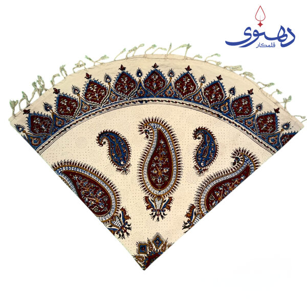 این سفره قلمکار با فرم گرد و نقشهای سنتی چاپشده با مهر چوبی، انتخابی خاص برای چیدمان رومیزی در فضاهای صمیمی و فرهنگی است. نقوش بتهجقه، اسلیمی یا ترنج با رنگهای گیاهی پایدار، جلوهای متقارن و آرامشبخش را ایجاد میکنند—گویی قطعهای از نگارگری ایرانی بر سطح میز نشسته است.